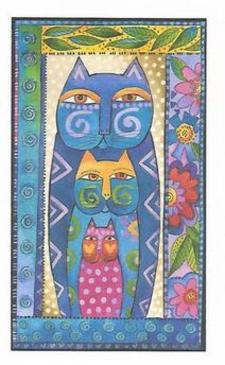 3 Stacked Cats by Laurel Burch. Her vivid and vibrantly coloured images are whimsical creations from a mythical world of her own imagination.